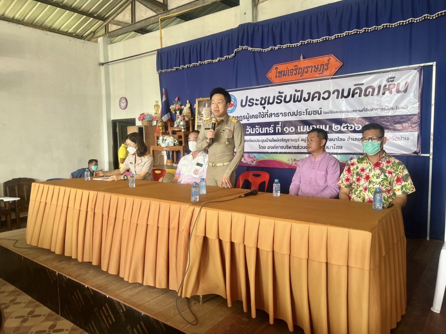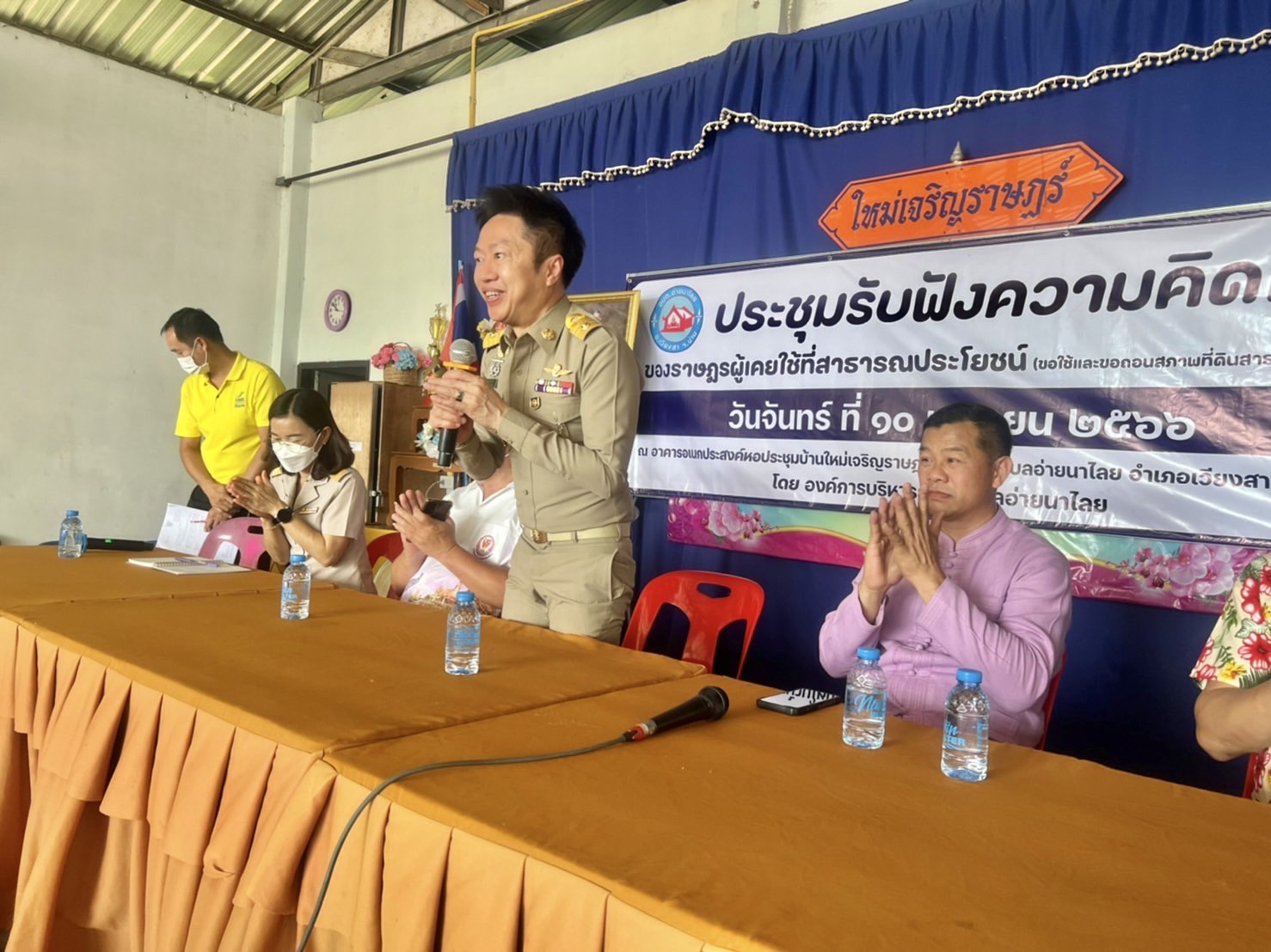 นายสมหวัง ใจหมั่น นายกองค์การบริหารส่วนตำบลอ่ายนาไลย พร้อมด้วยคณะผู้บริหาร และผู้นำท้องที่ ท้องถิ่น พร้อมด้วยประชาชนตำบลอ่ายนาไลยและชาวบ้านในพื้นที่ที่เกี่ยวข้อง เข้าร่วมการประชุมรับฟังความคิดเห็นและทำประชาคมของราษฎรผู้เคยใช้ที่สาธารประโยชน์ขอใช้และขอถอนสภาพที่ดินสาธารณประโยชน์ โดยมี นายนพรัตน์ ถาวงศ์ นายกองค์การบริหารส่วนจังหวัดน่าน พร้อมด้วยหัวหน้าส่วนองค์การบริหารส่วนจังหวัดน่าน เข้าร่วมรับฟัง ณ หอประชุมบ้านใหม่เจริญราษฎร์ หมู่ 4 ตำบลอ่ายนาไลย อำเภอเวียงสา จังหวัดน่าน