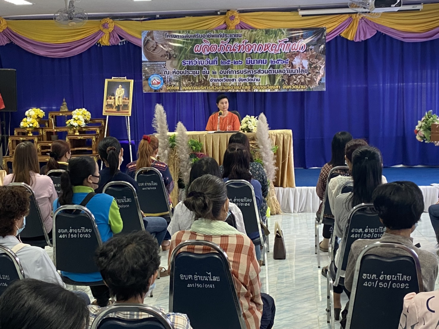 วันนี้ 25/03/2564 เวลา 09.00 น. นางจันทร์เพ็ญ คำอุ่น นายกองค์การบริหารส่วนตำบลอ่ายนาไลย ได้มาเป็นประธานการกล่าวเปิดงานโครงการส่งเสริมอาชีพแก่ประชาชน "ผลิตภัณฑ์จากหญ้าแฝก" โดยมีกลุ่มผู้นำชุมชนและกลุ่มแม่บ้าน,สตรี ตำบลอ่ายนาไลย เข้าร่วมการอบรมครั้งนี้ โดยมี"นายเนตร ไชยยงค์ ประธานกลุ่มหญ้าแฝกภาคเหนือ" ได้มาเป็นวิทยากรให้ความรู้เรื่องหญ้าแฝก ณ ห้องประชุมองค์การบริหารส่วนตำบลอ่ายนาไลย