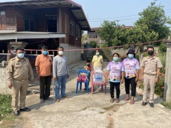 ตำแหน่ง นักวิเคราะห์นโยบายและแผนปฏิบัติการ เป็นตัวแทน มอบของเยี่ยมผู้ที่กักตัวเสี่ยงสัมผัสโควิด 19 จำนวน 4 ครอบครัว บ้านนาไลยใต้ หมู่ 10 ต.อ่ายนาไลย อ.เวียงสา จ.น่าน