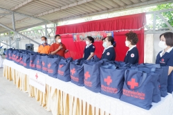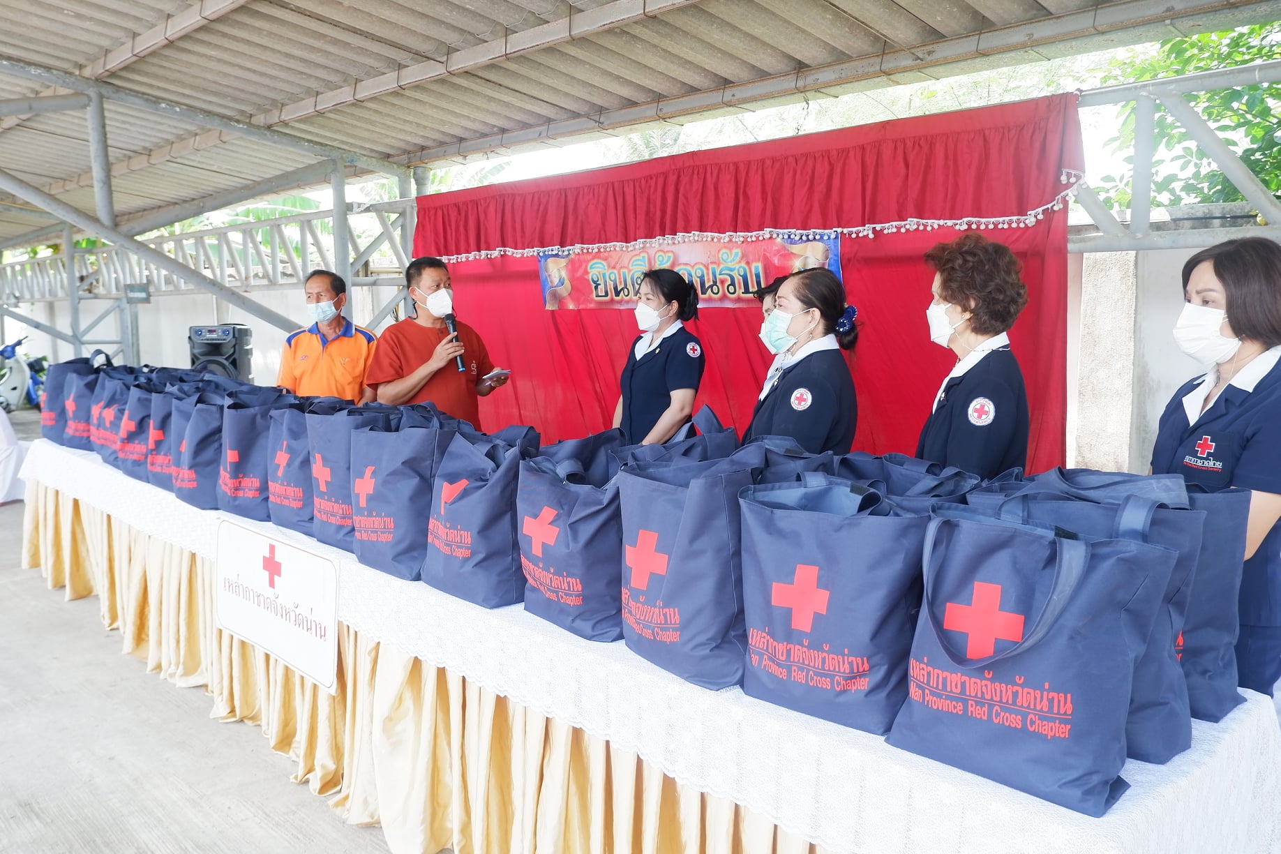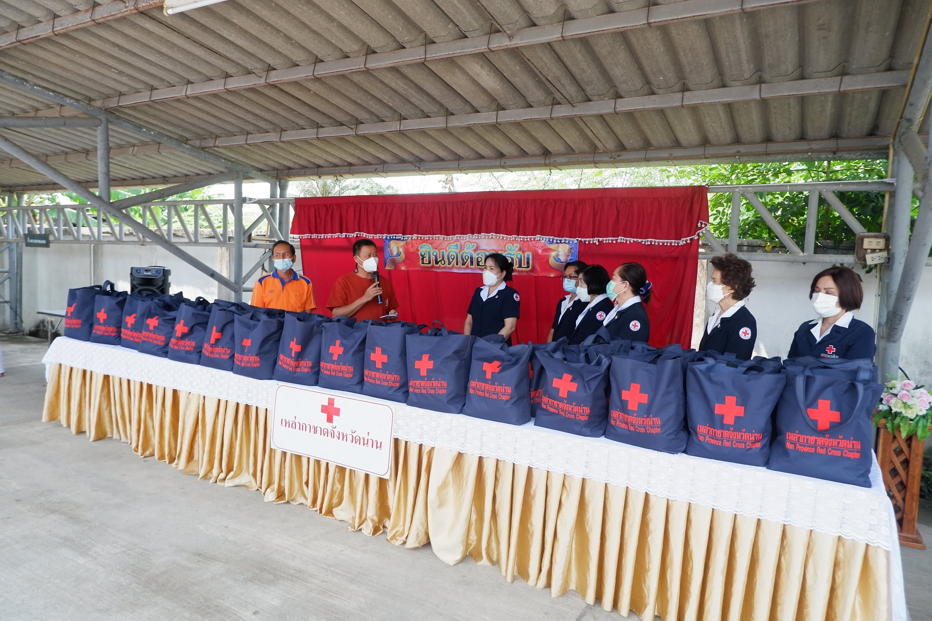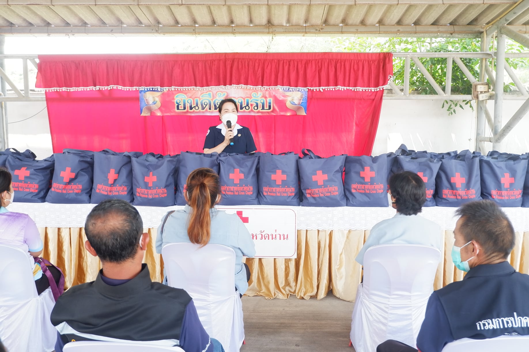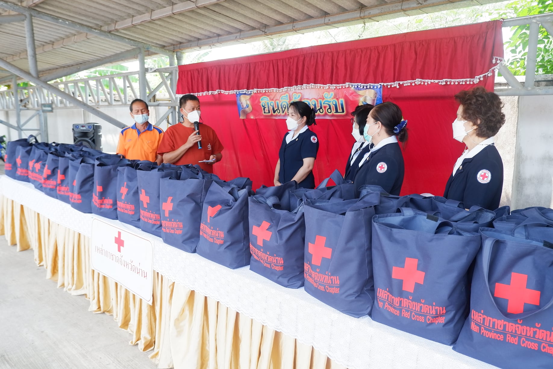 วันที่ 31 มีนาคม 2565 เวลา 10.00 น. นางสุดารัตน์ แววบัณฑิต นายกเหล่ากาชาดจังหวัดน่าน มอบหมาบให้ นางสุภาสินี งามธุระ รองนายกเหล่ากาชาดจังหวัดน่าน พร้อมคณะกรรมการ สมาชิกเหล่ากาชาดจังหวัดน่าน มอบถุงยังชีพแก่ ตัวเเทน อสม.ในพื้นที่ตำบลอ่ายนาไลยเพื่อเเจกจ่ายบรรเทาให้เเก่ผู้ประสบภัยโรคโควิด-19ที่กักตัวในบ้าน พื้นที่ตำบลอ่ายนาไลย อ.เวียงสา จ.น่าน